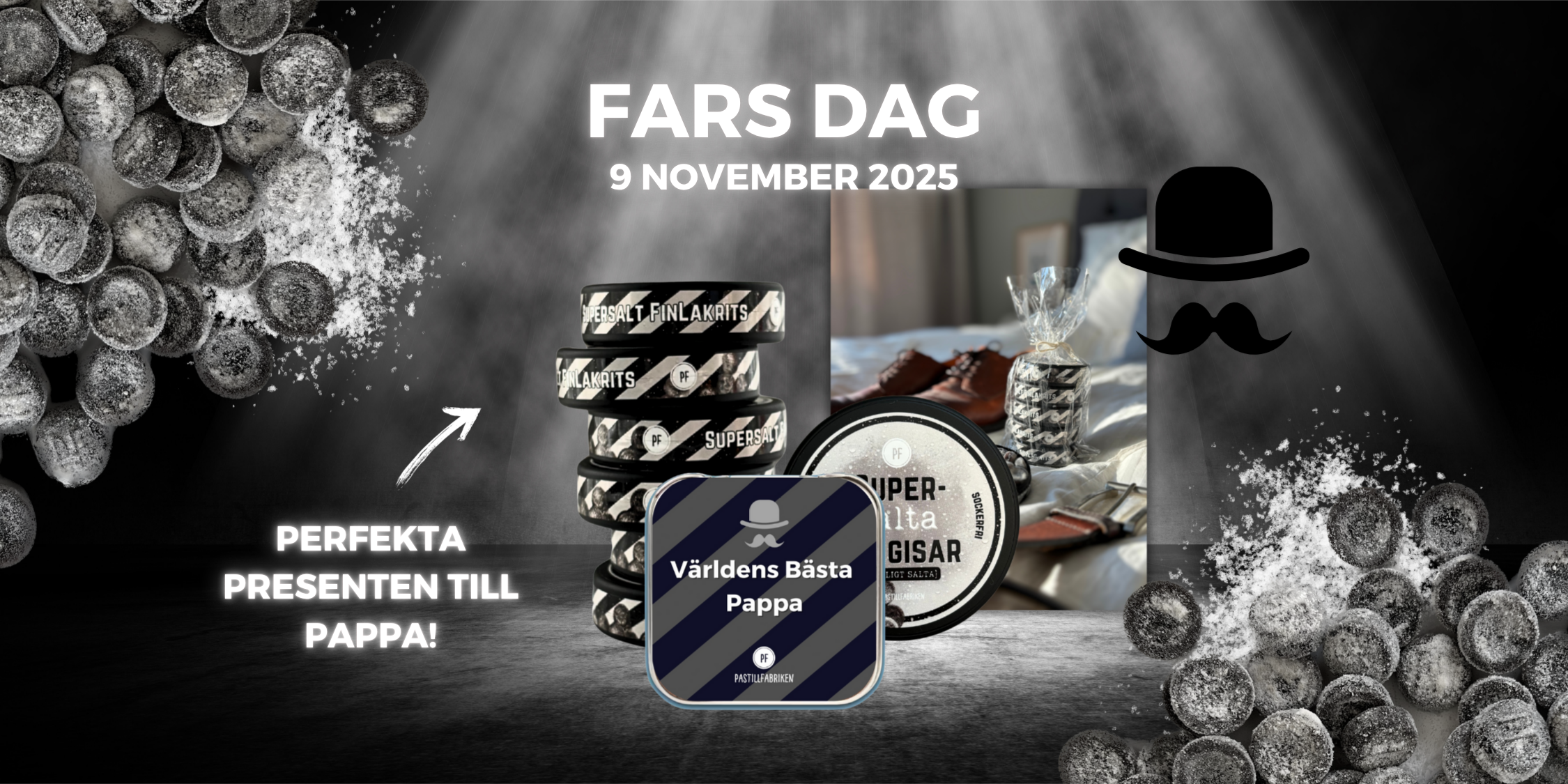 Nytt för i år är Fars Dag-kitet! Ett inslaget gåvokit med lakritsdosor och en unik plåtask med en omtänksam fars dag-hälsning på locket.