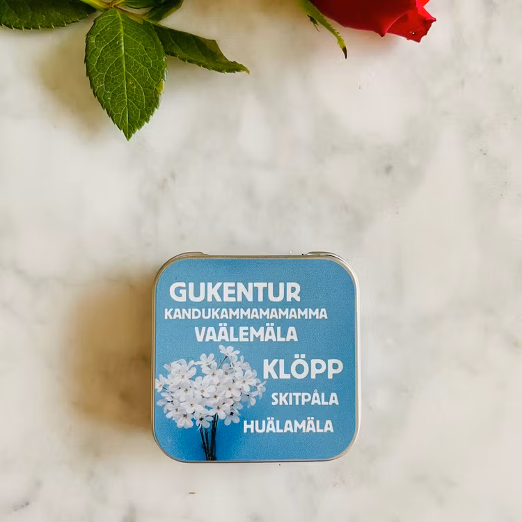 Sötningsmedel (maltitol, sorbitol,steviolglykosider) Stabiliseringsmedel (gummi arabicum), Syra (citronsyra) Koncentrat av svart morot, Naturliga aromer, Zink, Vegetabiliska oljor (kokos,raps)